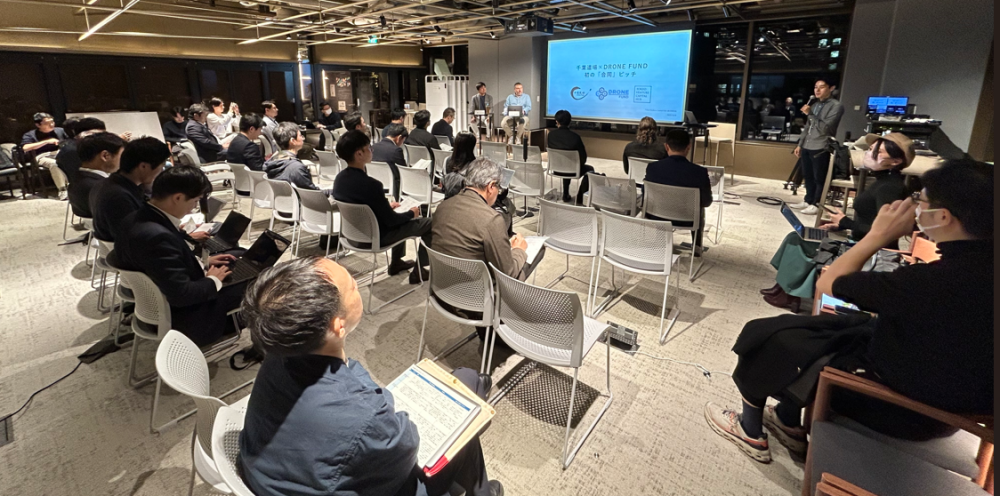 2025年11月4日、森ビル株式会社・千葉道場株式会社と共催で「千葉道場 × DRONE FUND|初の「合同」ピッチ」を「Tokyo Venture Capital Hub」(麻布台ヒルズガーデンプラザB)にて開催しました。来場者はCVC・事業会社の皆さまが中心で、30~40名の方々にご参加いただきました。